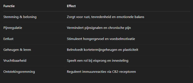 Functies van Anandamide: